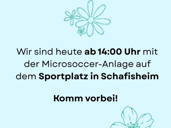 WeiterlesenHast du Lust auf schnelle 1:1-Fussballduelle und ein gemütliches Zusammensein? Dann komm vorbei, wenn wir heute mit der Microsoccer-Anlage in